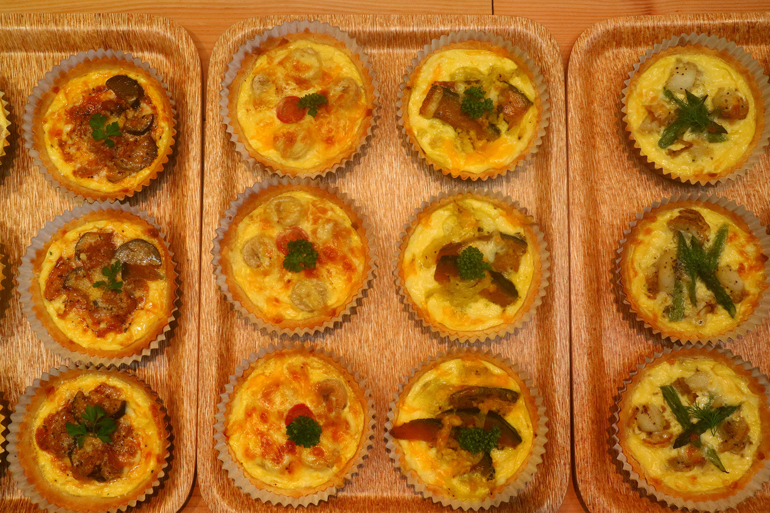 QUIのキッシュは、地元食材を使い、米粉や豆乳を混ぜてグルテンフリーにしたオリジナルキッシュです。
