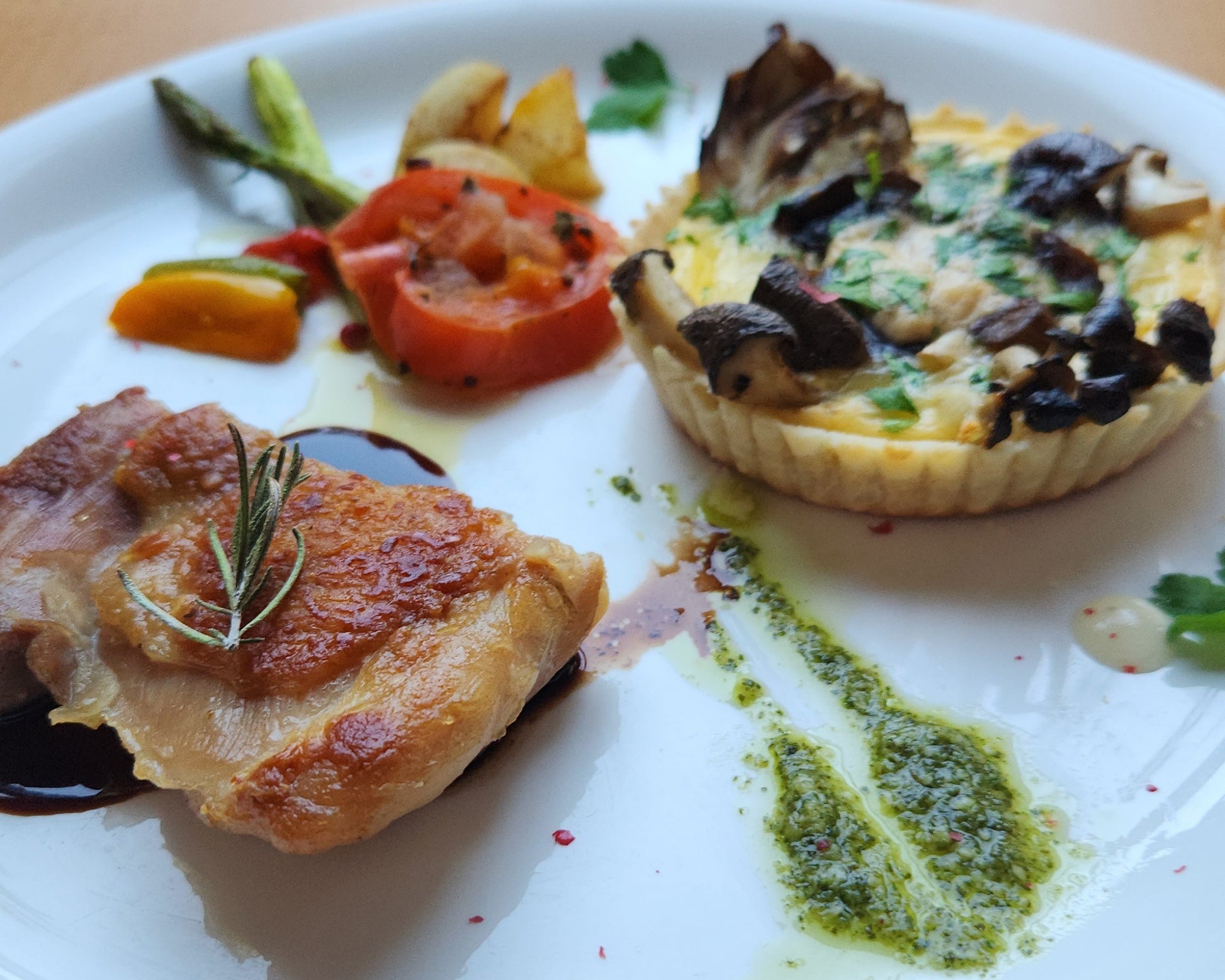 旬の果物を使用したサラダ、野菜具だくさんなスープと米粉フォカッチャ、きのこのキッシュと選べるメインディッシュ(チキングリルまたは燻製サーモン)、米粉ガトーショコラを組み合わせた、心温まる贅沢なランチコースをご用意しております。